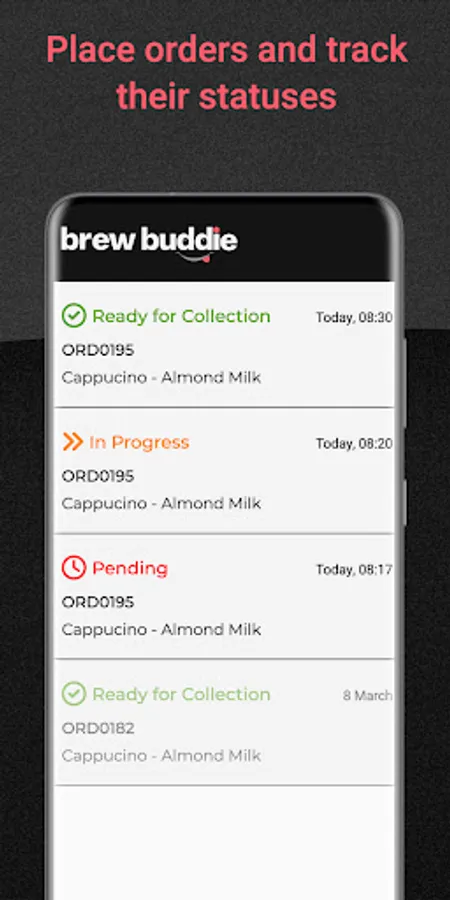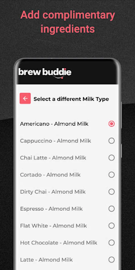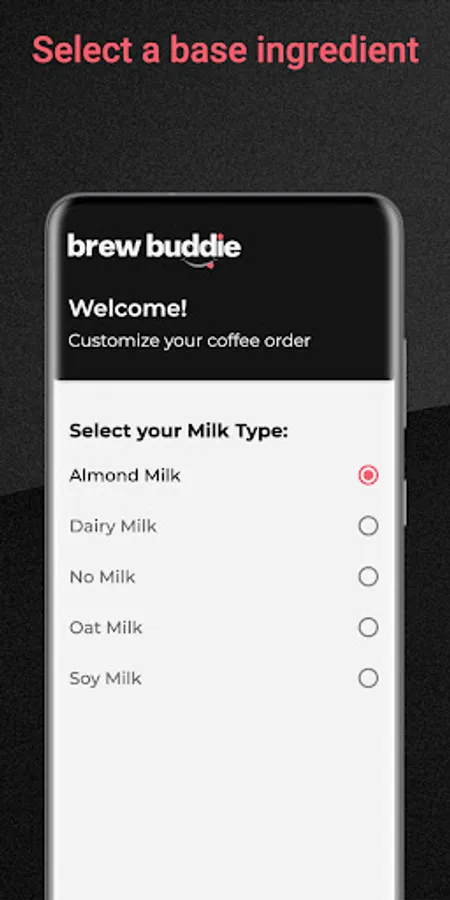 The BrewBuddie Customer App is where the customer or user will go to place their orders. Here’s how it works. Firstly download the app and create your account as a customer. Once you have made your account, you will use these details to log in. Once logged in, customize your order by choosing the base ingredient. This is followed by a second step containing a set of options complementing the base ingredient. If you are happy with your selection, the order will be placed and sent through to the Barista App for the Barista to begin processing your order. You’ll be notified when your order has a change in status.