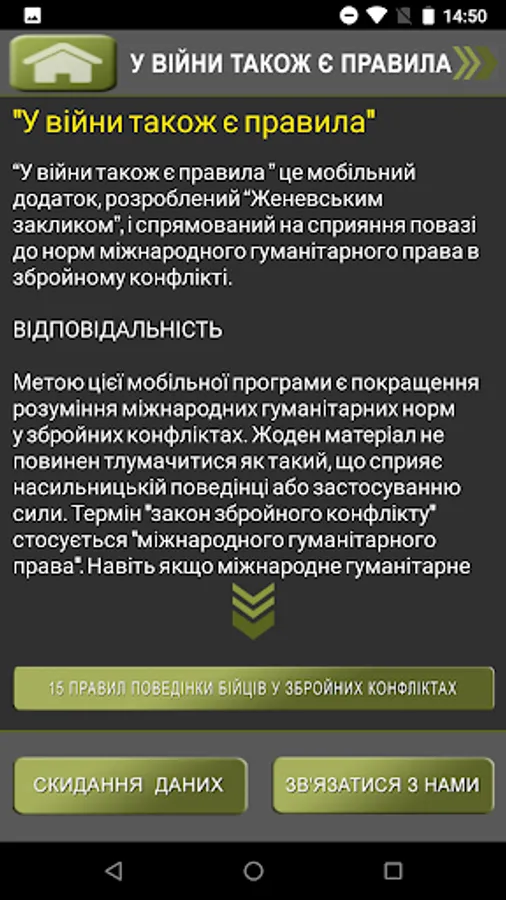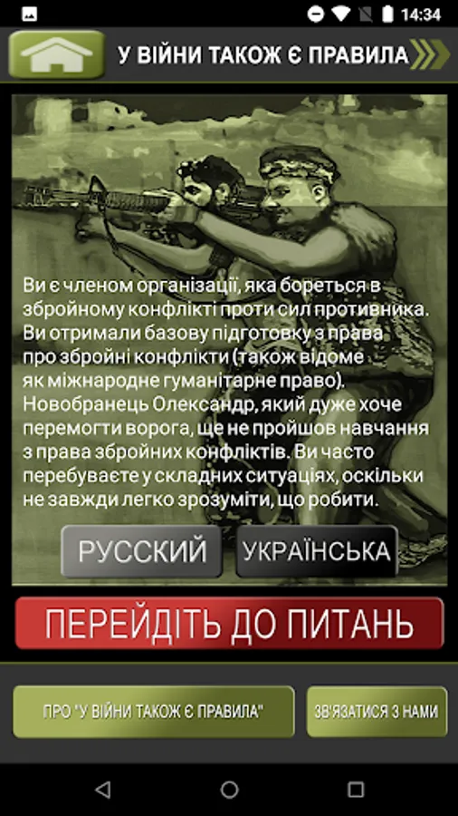 Welcome to the application "War also has rules", a quiz-test that will allow you to test your knowledge of the laws of armed conflict.