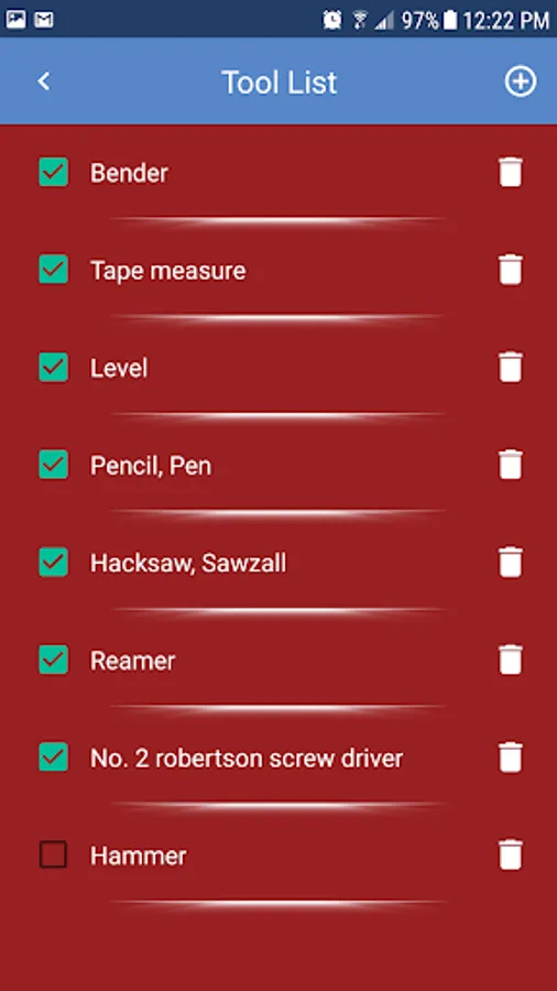 The TOOL LIST and MATERIAL LIST are just generic check lists that we made up, but if you don't like our set up you can create your own. The list will be saved within the app.