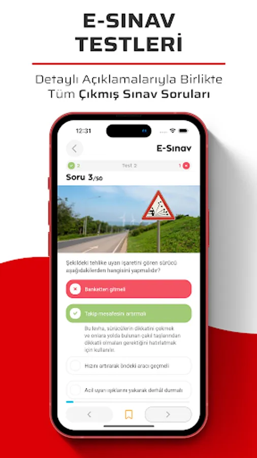 If the Driving License Exam is waiting for you, your driver's license is in your pocket with this application! Download and start working immediately. Developed for the best preparation for the Driving License Exam!