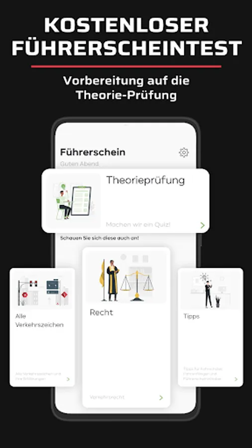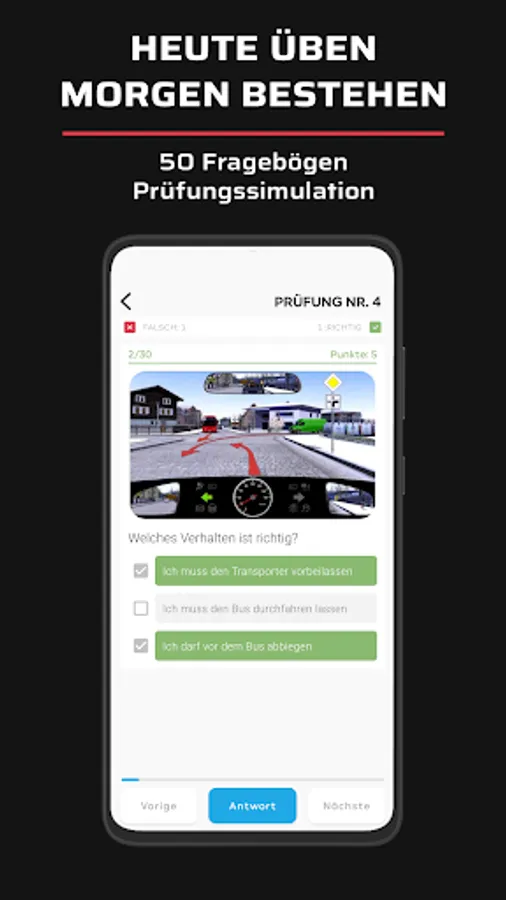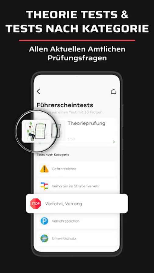Contains the original questions of all classes from TÜV and DEKRA with videos and original test simulations.