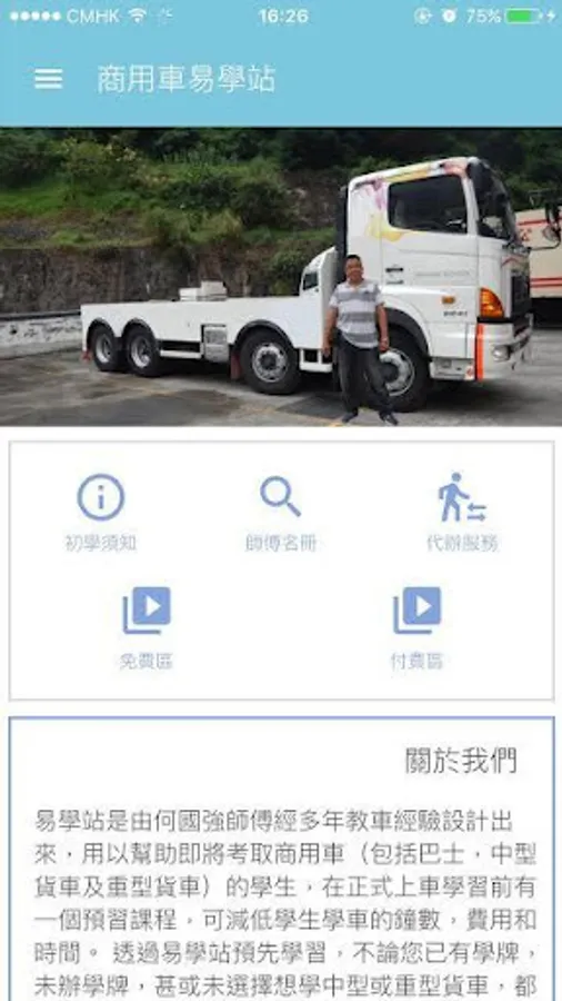 易學站是由何國強師傅經多年教車經驗設計出來,用以幫助即將考取商用車(包括巴士,中型貨車及重型貨車)的學生,在正式上車學習前有一個預習課程,可減低學生學車的鐘數,費用和時間。 透過易學站預先學習,不論您已有學牌,未辦學牌,甚或未選擇想學中型或重型貨車,都可安坐家中自學,不受時間地域限制制,是您的最佳學車選擇。