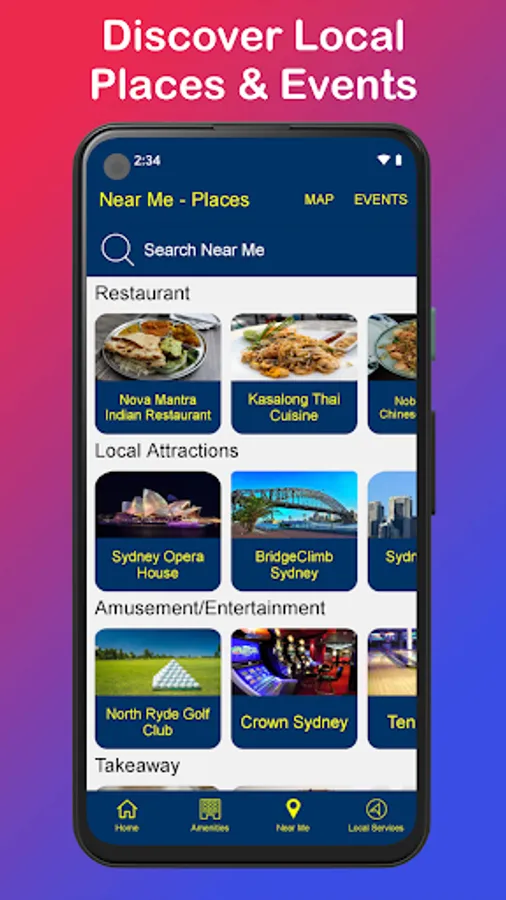 Near Me: Discover what there is to do nearby including restaurants, supermarkets, local attractions and more.