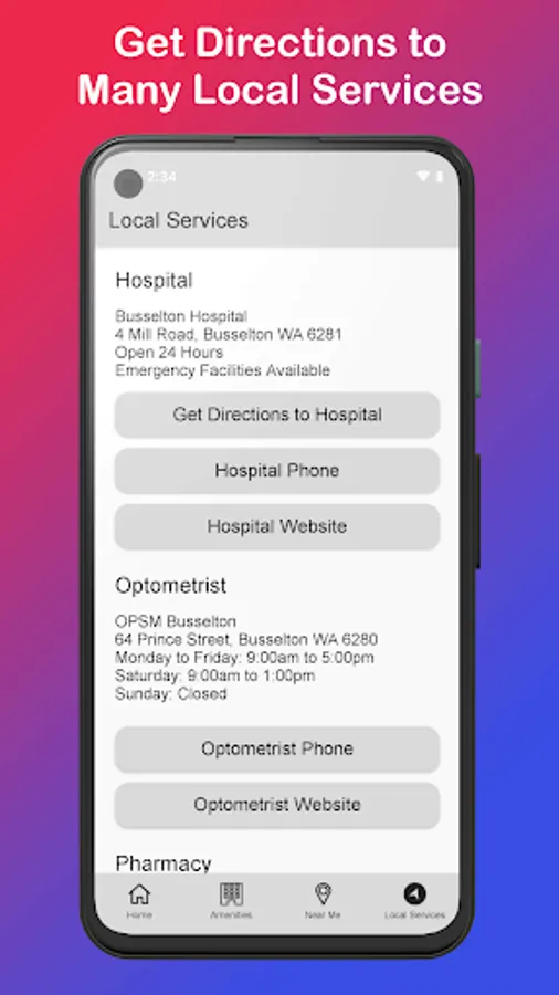 Local Services: Have immediate access to local doctor details and more including phone numbers and directions there.
