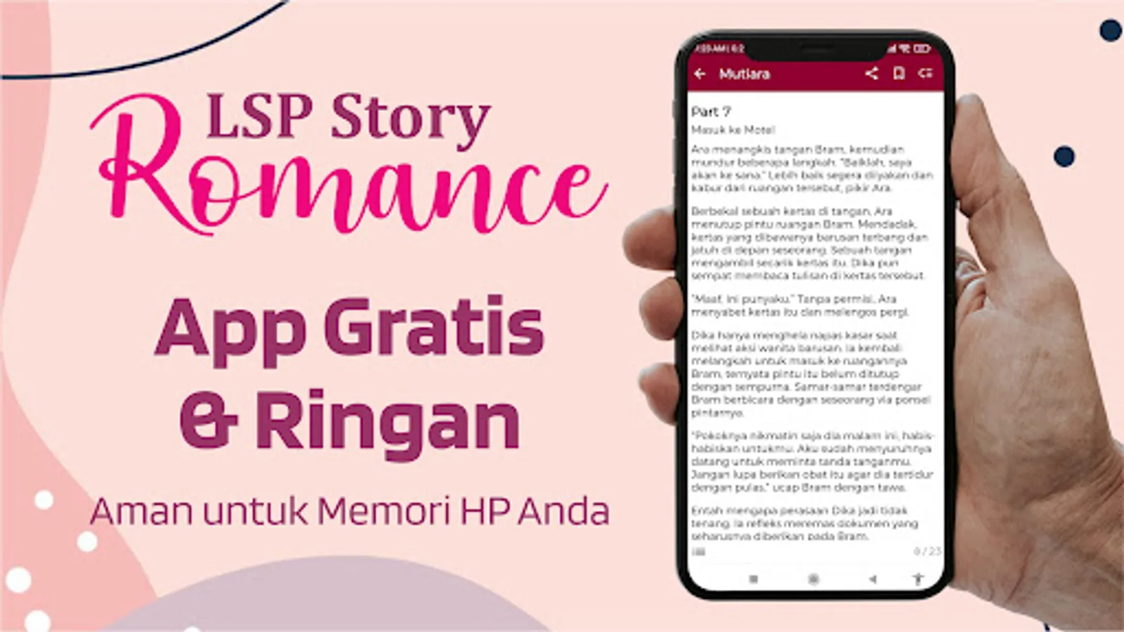 LSP Story - Romance is an ebook application with the theme of romance, which is adapted from a true story. The author did some research and asked sources to write all of these stories. Guaranteed you will baperan, cry, angry, smile to yourself while reading these stories.