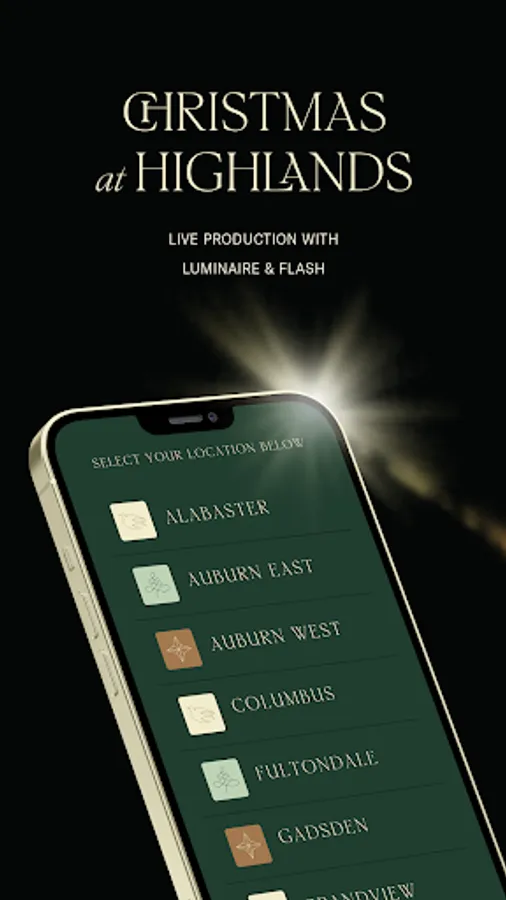 The Highlands Experience App will immerse you into the excitement and spectacle of Christmas at Highlands. Download the app, select your location when you arrive for a service, and make sure notifications are enabled to have the best user experience. We'll let you know when to open the app during the service. All your questions about Christmas at Highlands can also be answered inside the app. We can't wait to celebrate with you this year!