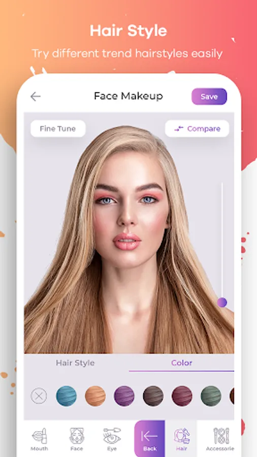 ✨ Hair Coloring – Dye your hair virtually with any color;