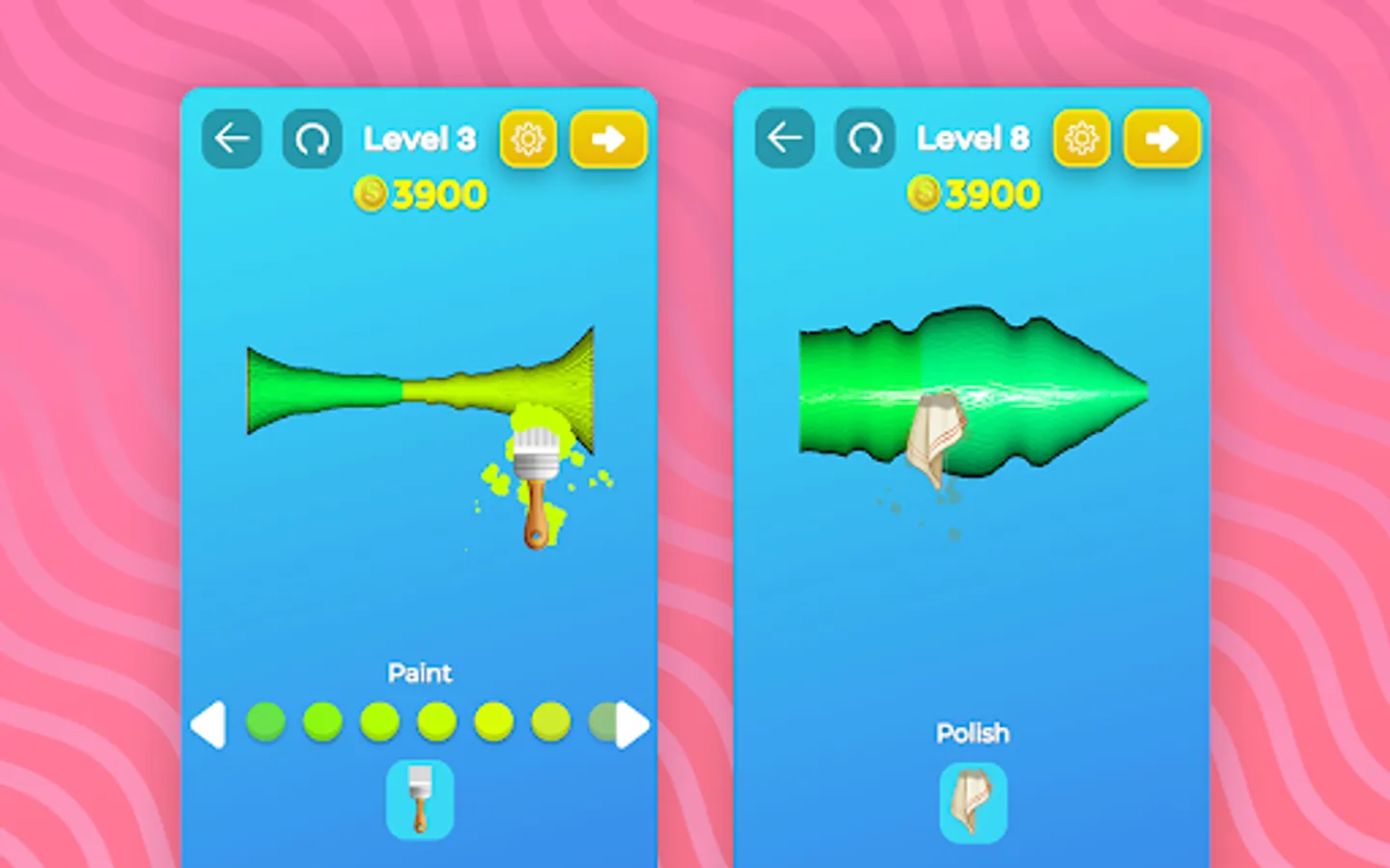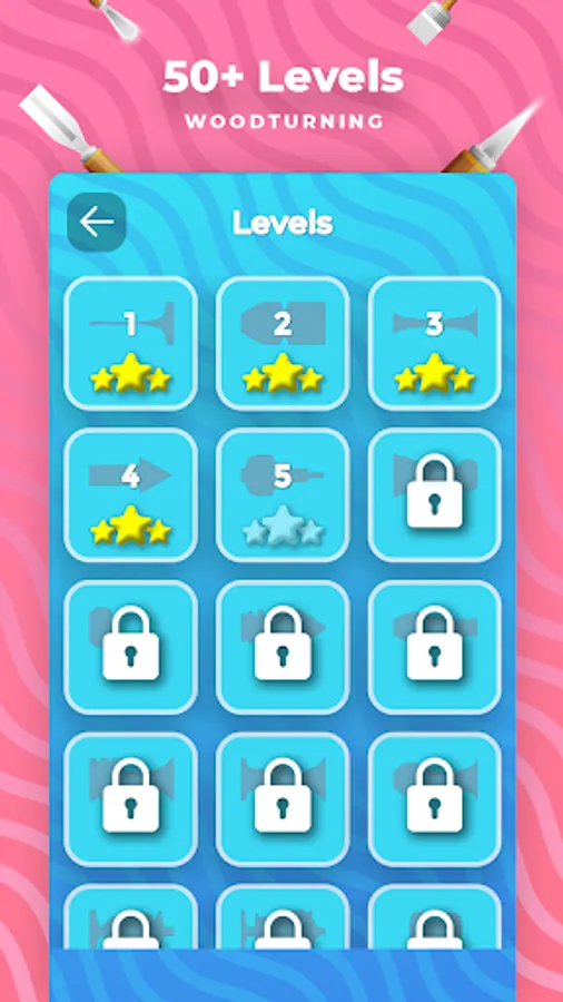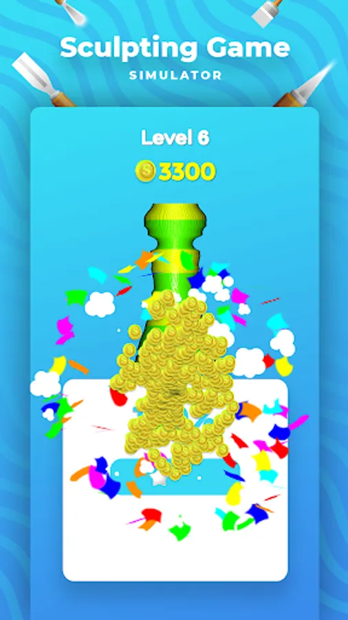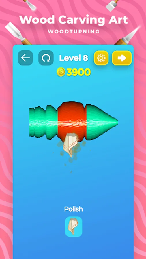 🌟 If you think this was all, you are wrong. Why is this one of the best sculpting games? It’s because we didn’t stop at this point. How? Well if you want to make perfect wood art, you’ll need more than stated. We provided tones of different chisels so your object can have a shape as a real wood turner would make. All you need to do is to go to your wood shop and buy them with the coins you collected!
