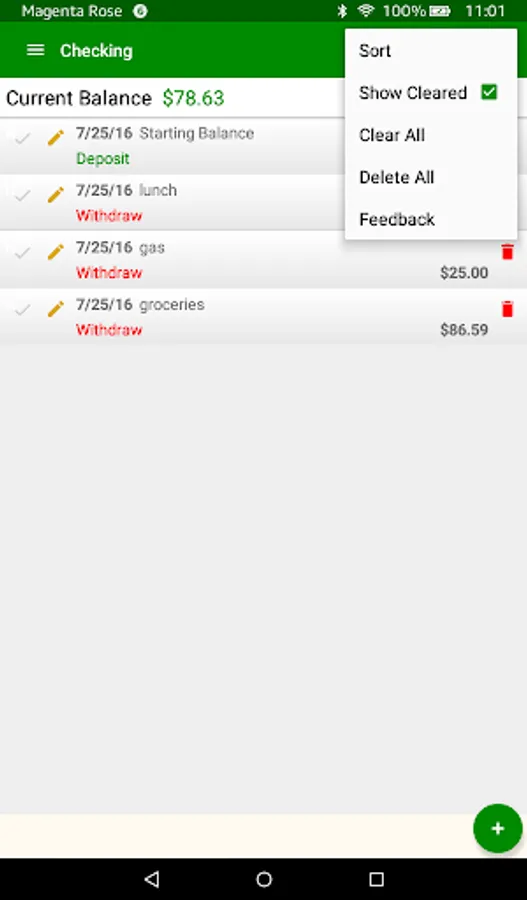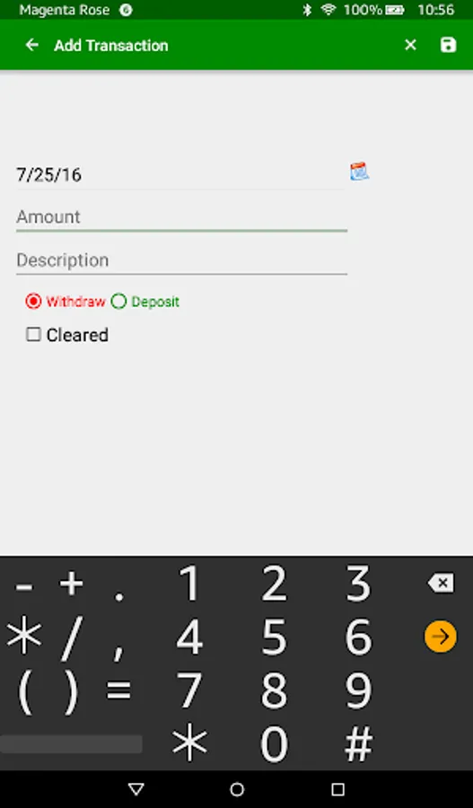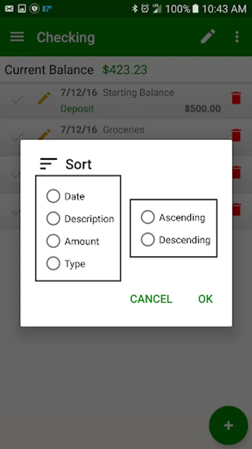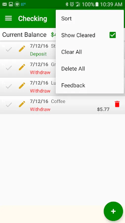 Account balance is an easy to use app that helps you keep track of your current account balance. Now there is support for multiple accounts (Checking, Savings, etc…). You also have the ability to edit transactions and mark transactions as cleared. You can sort transactions and hide cleared transactions.