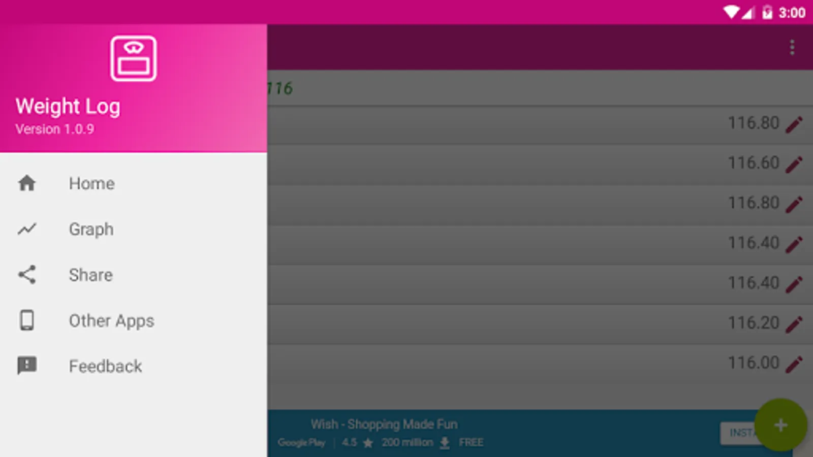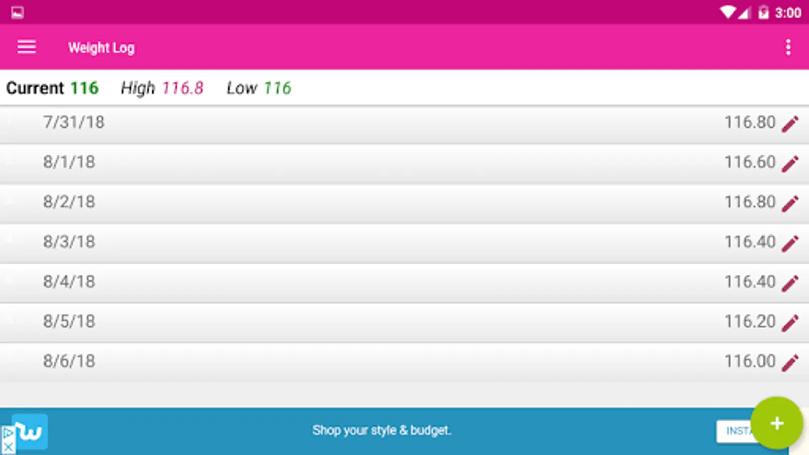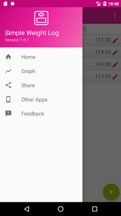 Weight Log is an easy to use app that helps you to monitor your weight. You can enter your weight each day and track changes over time. There is also a graph to provide visual feedback!