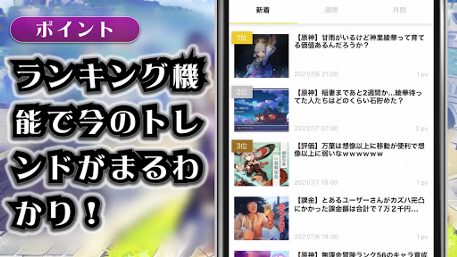 Check out the popular articles of Genshin today, weekly, and monthly!