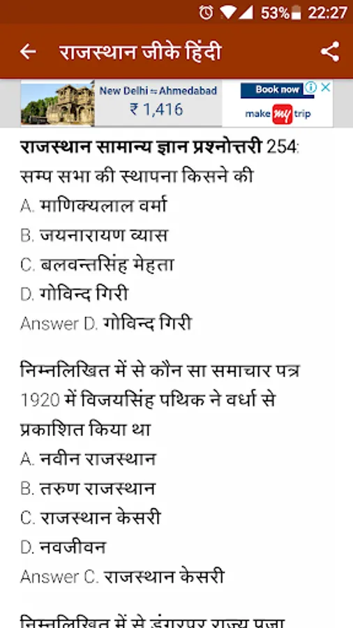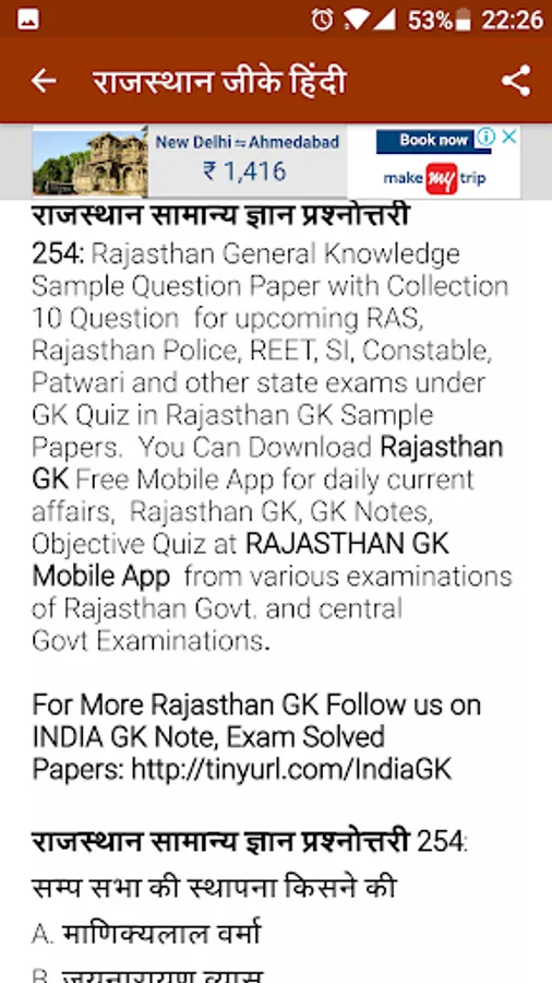 This app is for current affairs and general knowledge in Hindi. This app app will improves your general knowledge about Rajasthan.