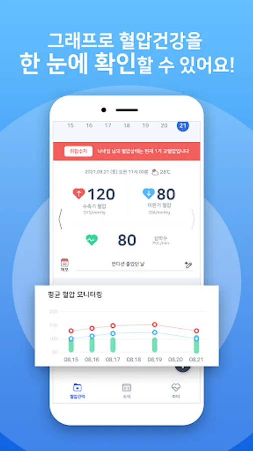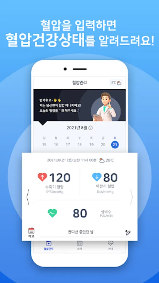 Manage high blood pressure and low blood pressure, where continuous management is important, easily and comfortably with a blood pressure manager!