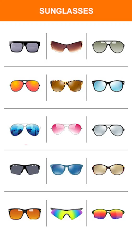 Sunglasses Photo Editor Stylish pic allows you to add glasses or sunglasses on your face and make your look glamour. Edit your photo with glasses and share with people on social media.