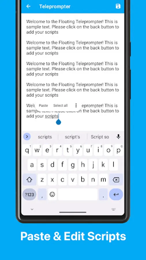 [Floating Teleprompter] is a handy teleprompter tool that can display Scripts at the top of any app. Convenient for vloggers, youtubers and live hosts.It's elegant and easy to use.