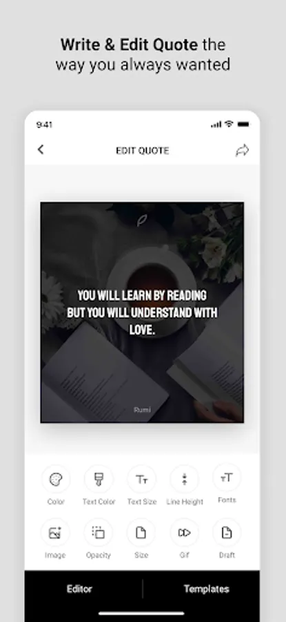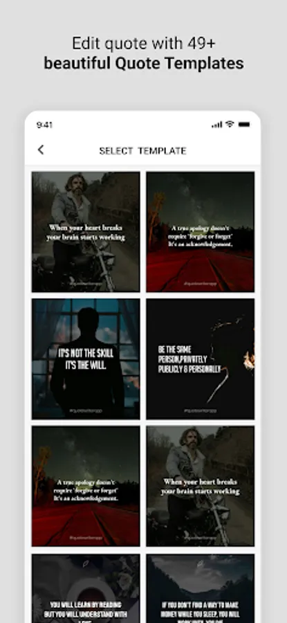 This quote maker app has white and black background or typewriter font color design so that you can go with a theme.