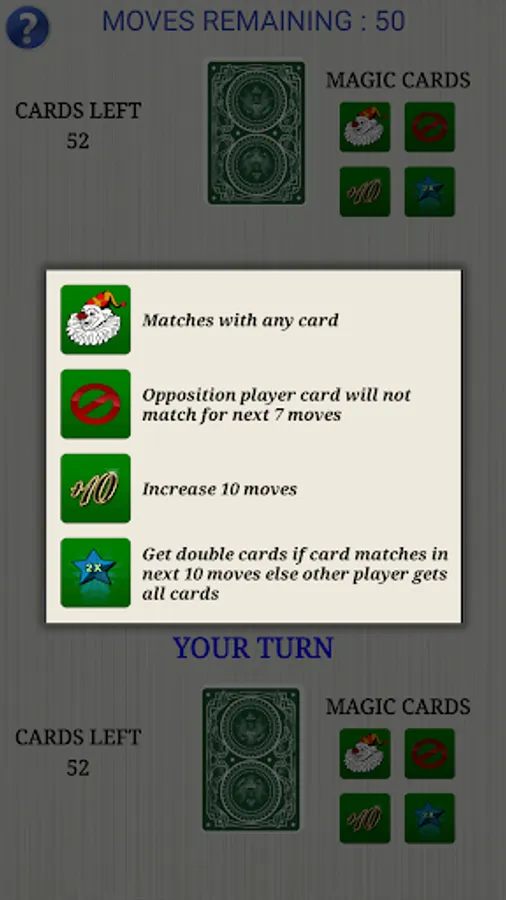 With this app new twist is added in the traditional game by the introduction of magic cards. Use of magic cards can change outcome of the game. Use them carefully to gain the advantage.