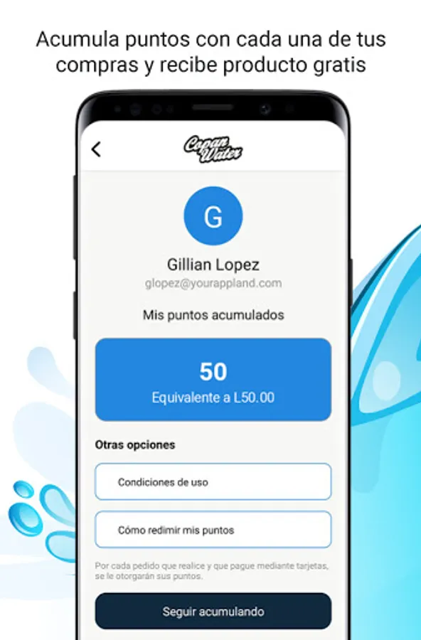 The Copan Water application is an app in which you can make purchases of water pipes, sanitizers, bottled water, perform maintenance at oasis and above all accumulate points as a benefit for your purchases.