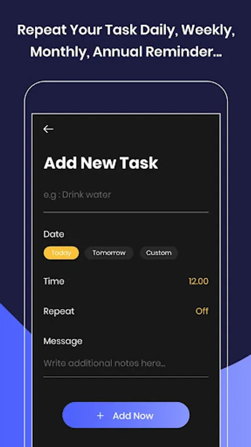 • TaskMe will allows you to have flexible repeatable taskes throughout the days, weeks, months and also annually.