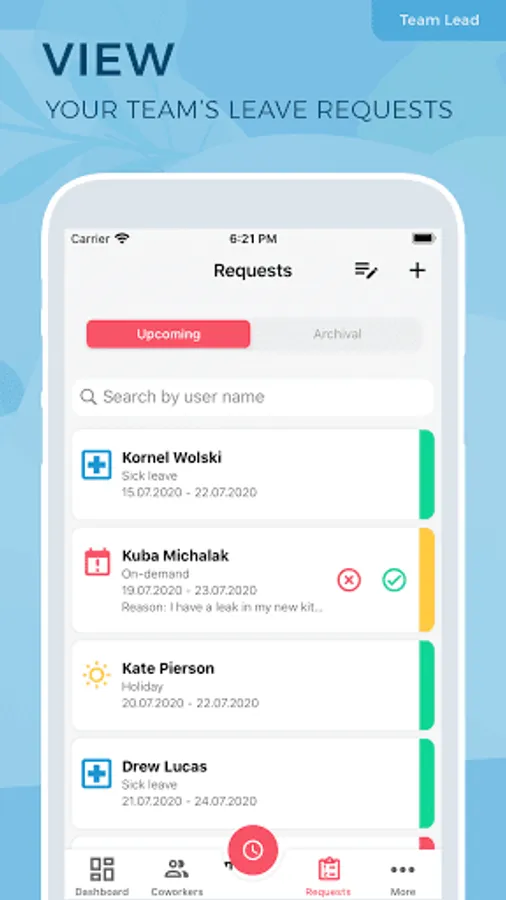 * Manage your team’s leave requests remotely