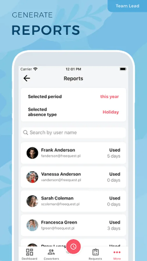 As the FreeQuest app enables online leave requesting and absence monitoring, it helps you get full transparency over the leave schedule within your team.