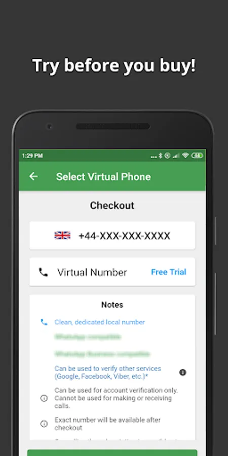 • Not all numbers are compatible with WhatsApp. Many numbers are blocked from using WhatsApp Business, especially from other virtual number providers!