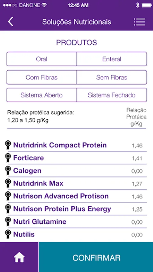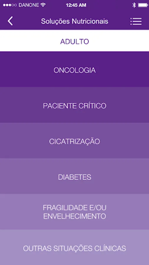 The Danone Nutritional Solutions application (DSN) has a search engine products as well as its information and nutritional compositions. In addition, the app offers a nutritional screening tool, calculators to identify nutritional deficiencies of patients, prescription algorithm for pediatric patients with malnutrition and with CMPA. As a complement, the professional can also find the sites for possible purchase of the products.