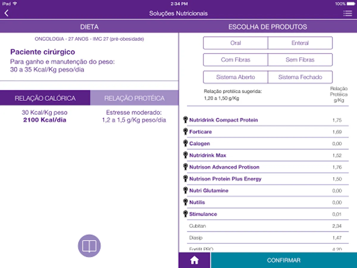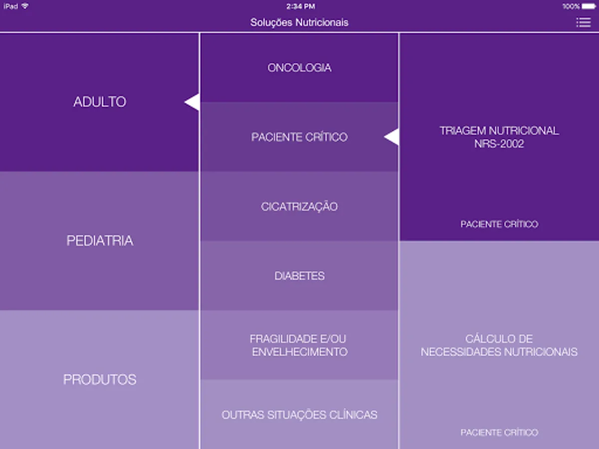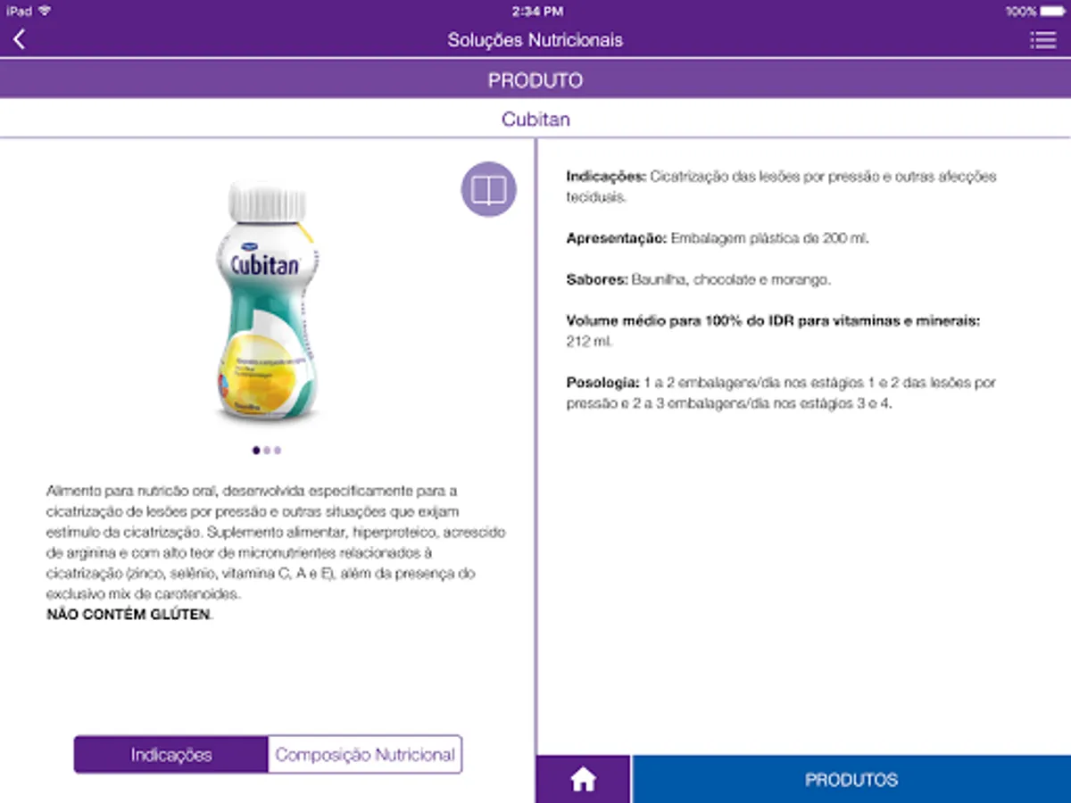 The Danone Nutritional Solutions application (DSN) has a search engine products as well as its information and nutritional compositions. In addition, the app offers a nutritional screening tool, calculators to identify nutritional deficiencies of patients, prescription algorithm for pediatric patients with malnutrition and with CMPA. As a complement, the professional can also find the sites for possible purchase of the products.