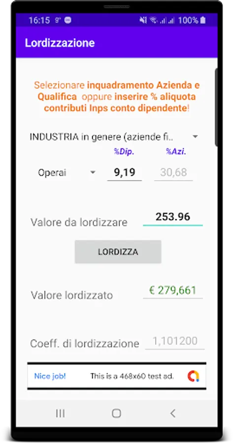 The App boasts a complete archive of INPS contribution rates and allows you to quickly calculate the lordisation and view the relative calculation coefficient.