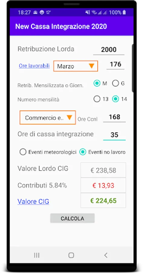 The application allows you to calculate the value of the Ordinary - Extraordinary - Exemption layoff.