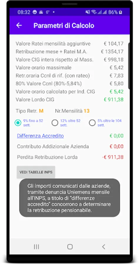 The calculation follows the INPS directives in order to determine the amount due to the worker.