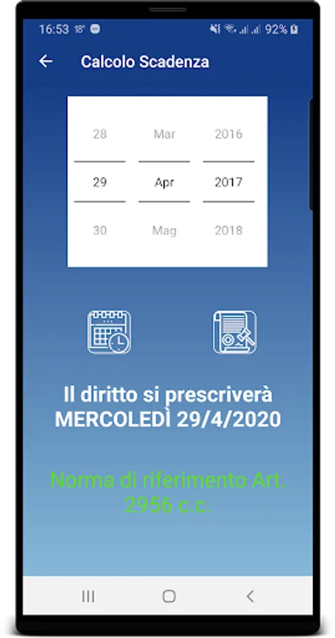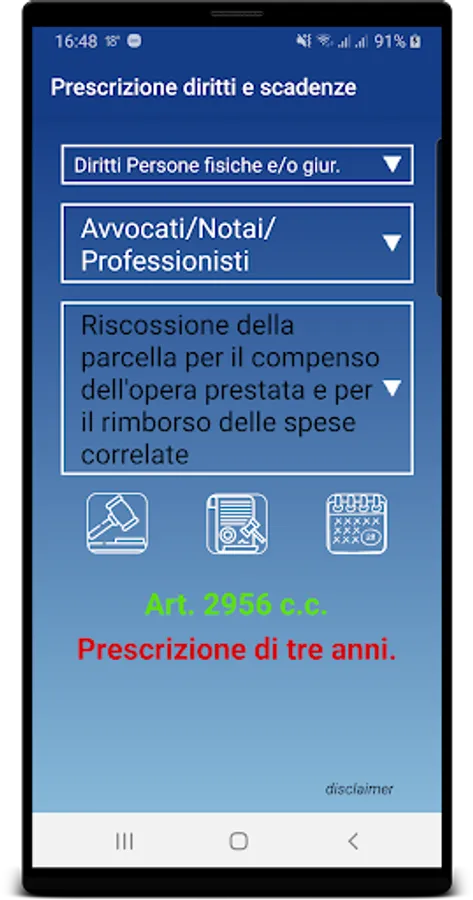 The application exposes the main legal references with immediate exposure of the limitation period.