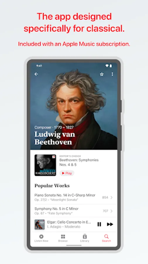 • Apple Classical is available on all Android phones running Android 9 (‘Pie’) or later.