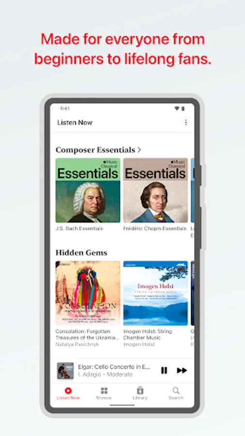 Apple Music Classical also makes it easy for beginners to get acquainted with the genre thanks to hundreds of Essentials playlists, insightful composer biographies, deep-dive guides for many key works, and intuitive browsing features.