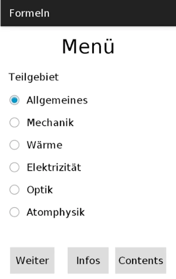 The app is used to read and learn physics formulas and to prepare for physics exams.