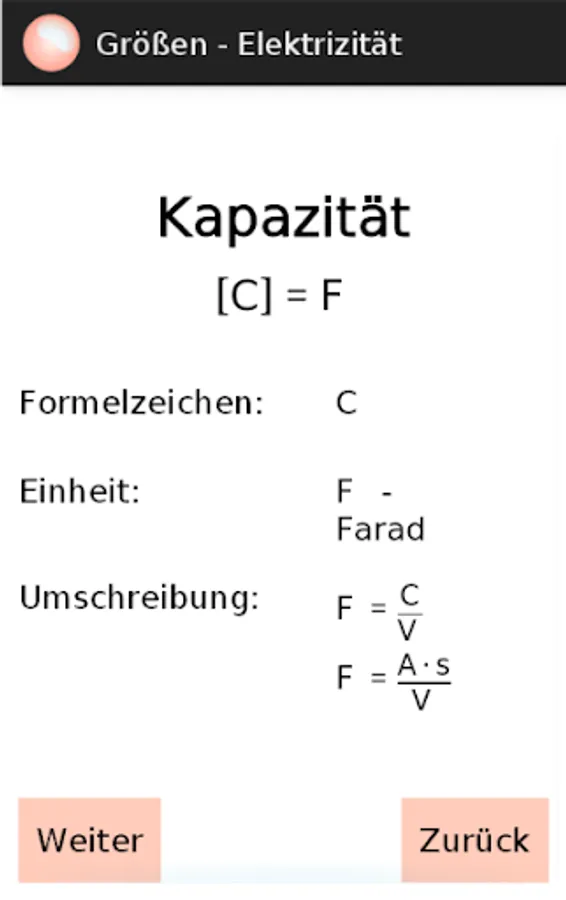 The app is used to read and learn physics formulas and to prepare for physics exams.
