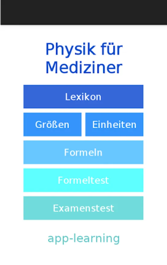 The app is used for comprehensive preparation for the Physikum and physics exams.
