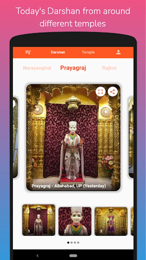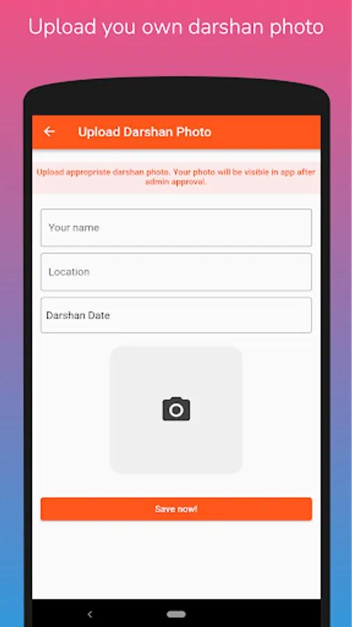 - Upload darshan photo of any temple you are visiting or have visited recently from gallery or capture from camera