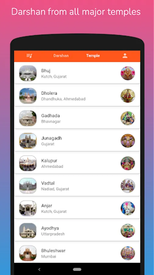 A spiritual app that provides devotees with daily darshan of lord shri swaminarayan to famous 20 temples of india including 6 main dham/temples which was constructed by sahjanand swami himself, i.e. Gadhpur, Vadtal, Ahmedabad, Bhuj, Junagadh, Dholera. This app provides some basic and extended features like: