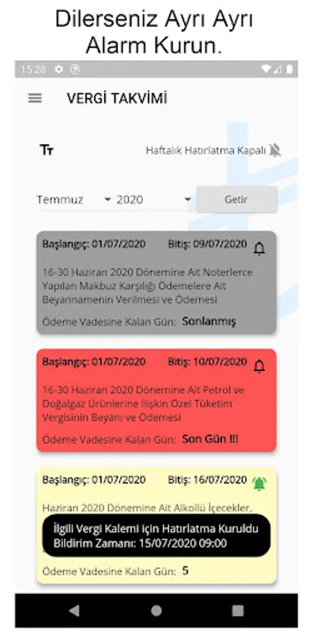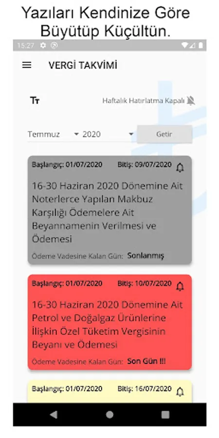 With a very simple and stylish design, you can easily distinguish between taxes that are approaching the payment at a glance, past or deadline.