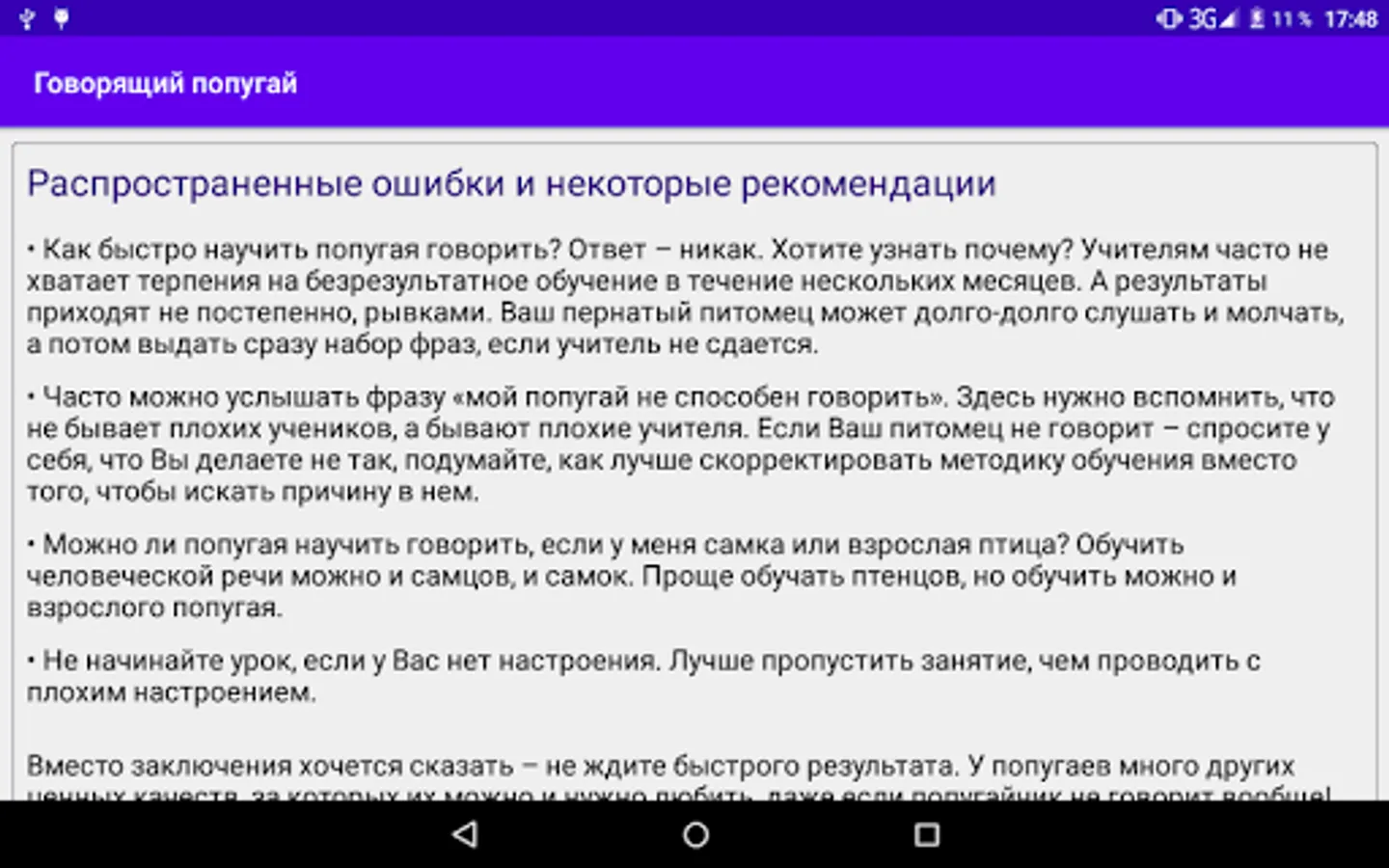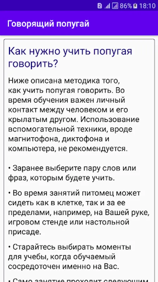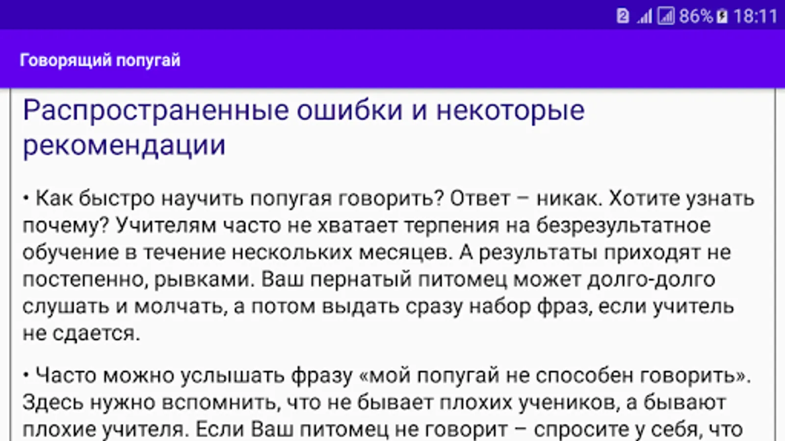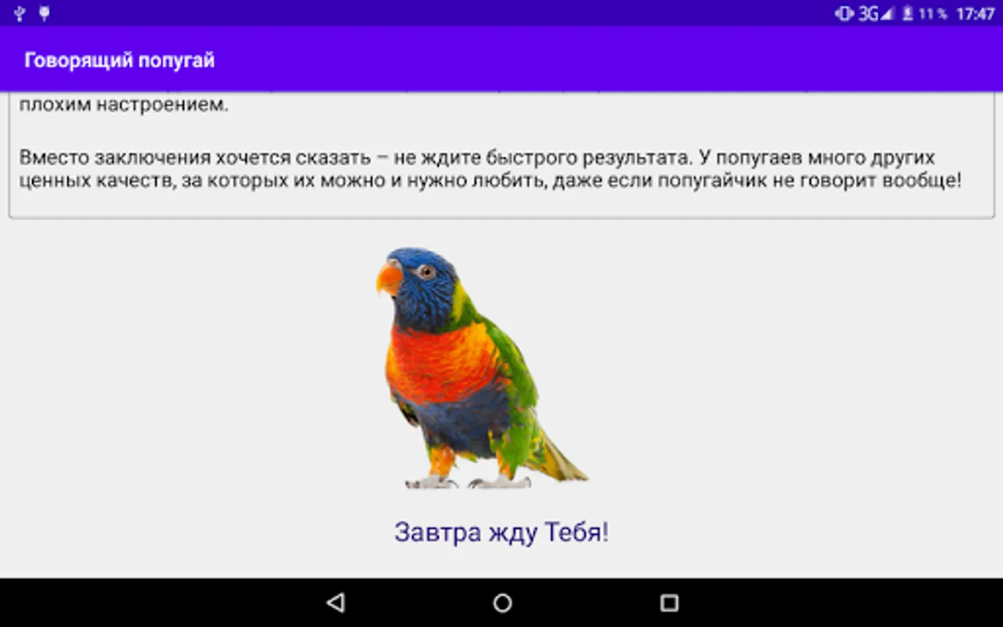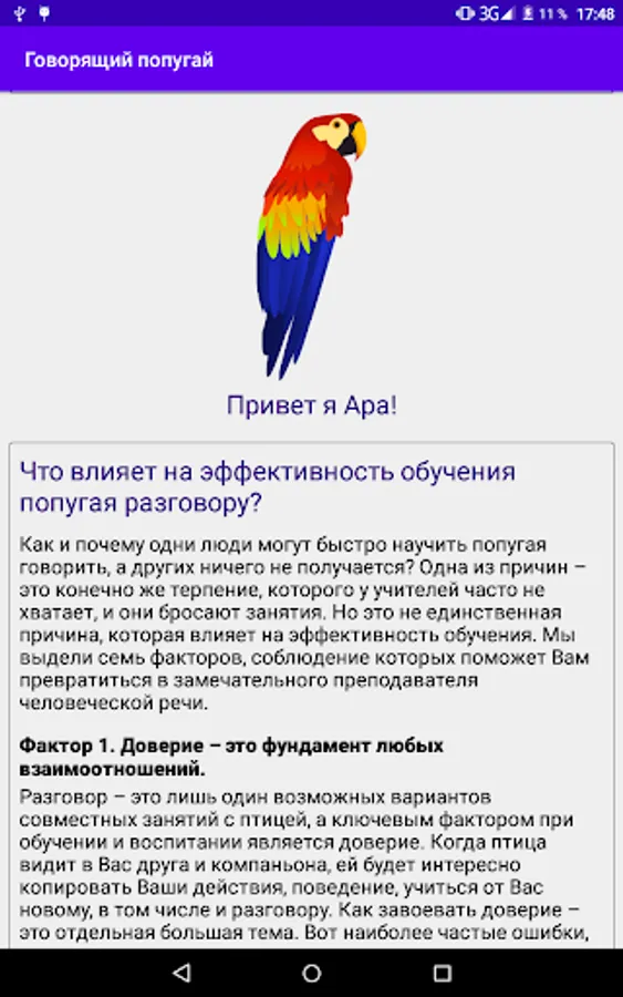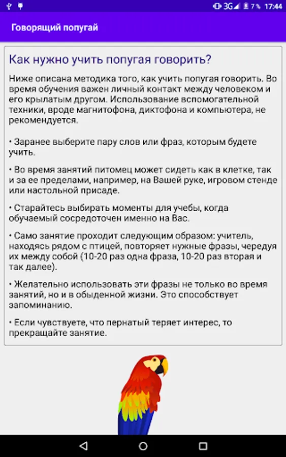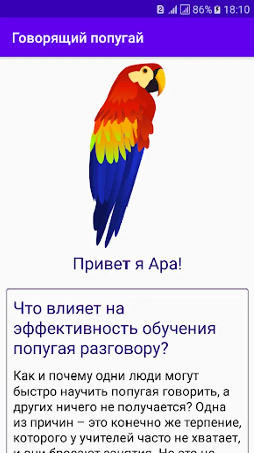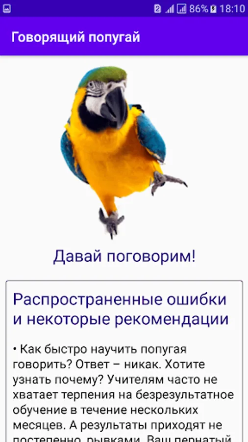 The full version of the application "How to teach a parrot to speak" has been released. All about parrots. How to teach a parrot to speak . https://play.google.com/store/apps/details?id=com.appleofdiscord.parrot