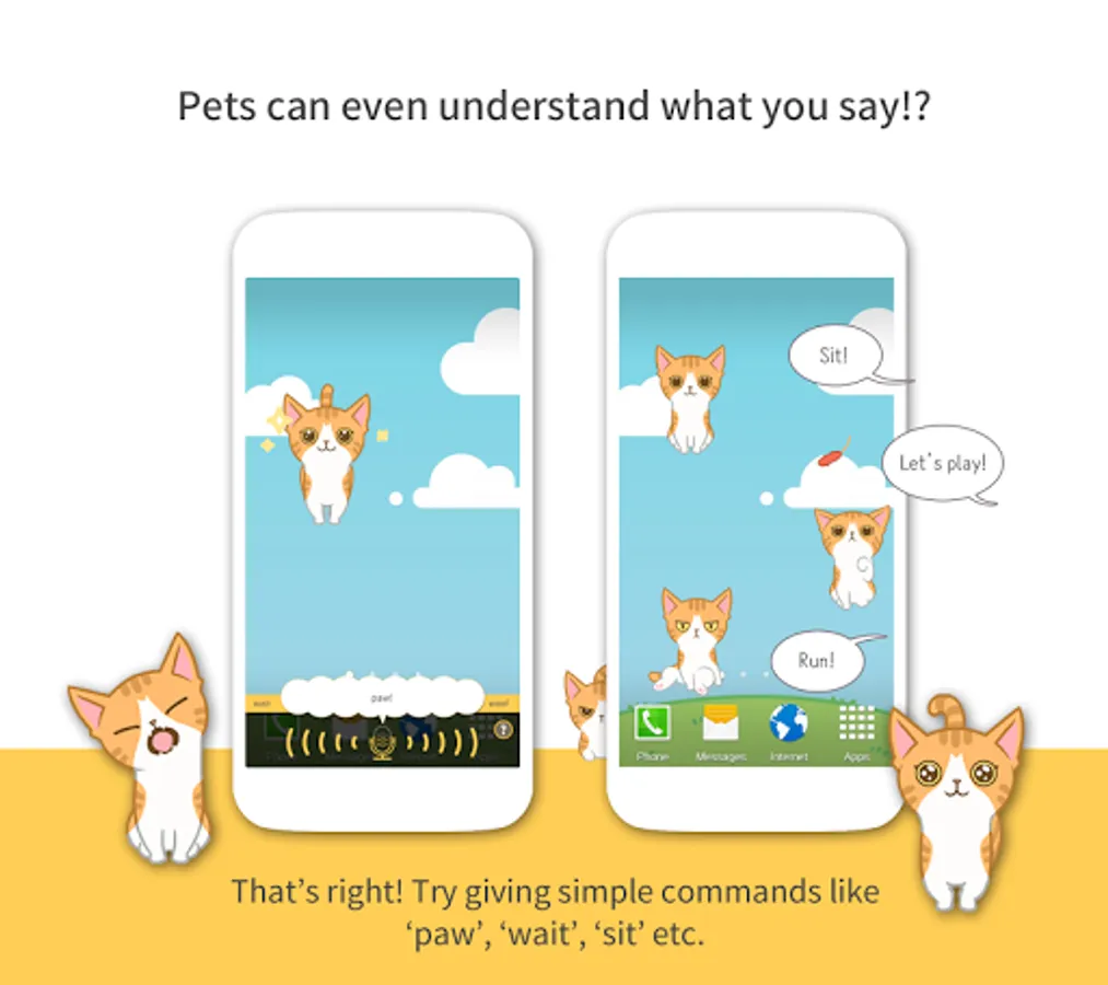 - Interact with pets by using Voice Commands and tap ‘!’ speech bubbles when they appear