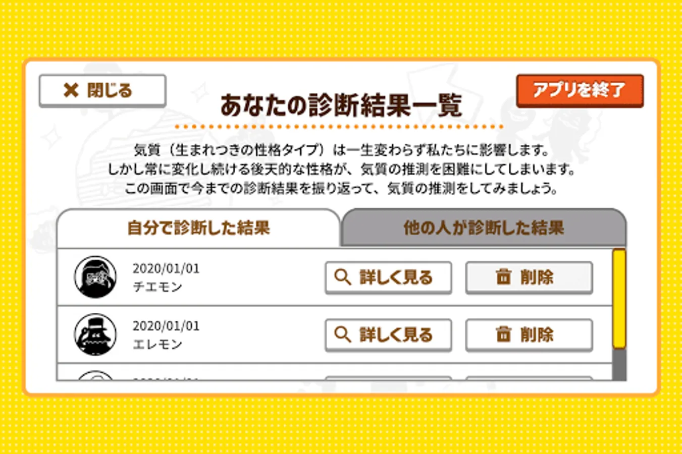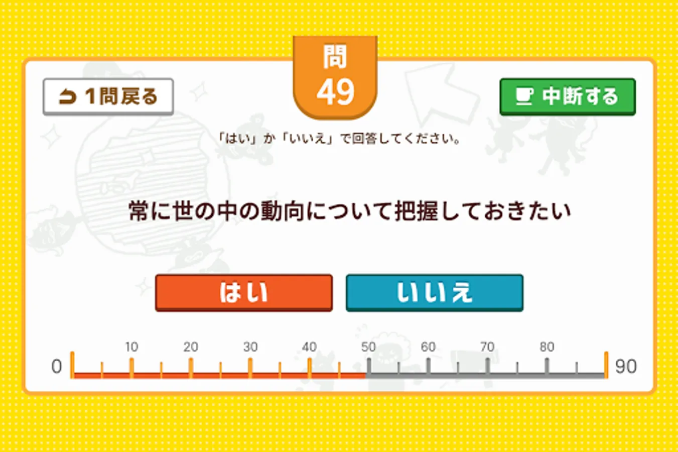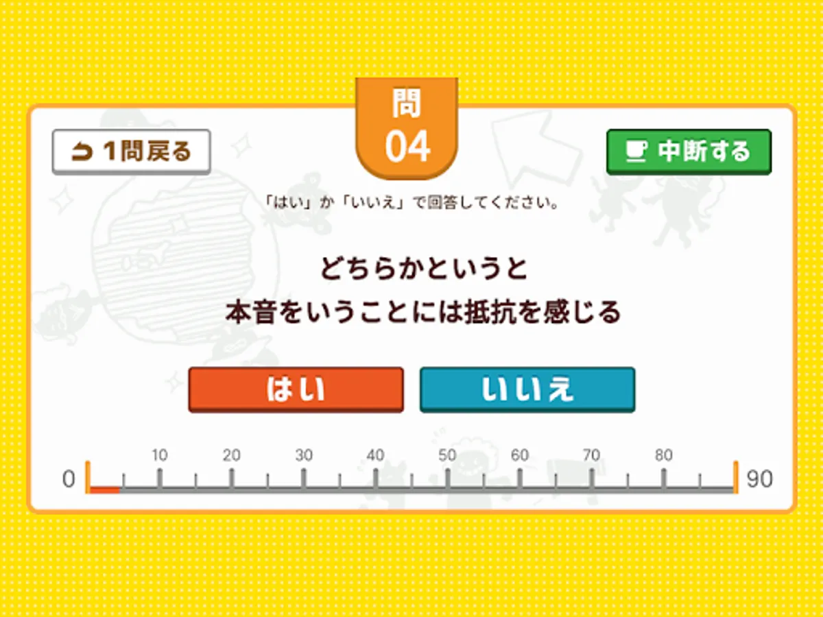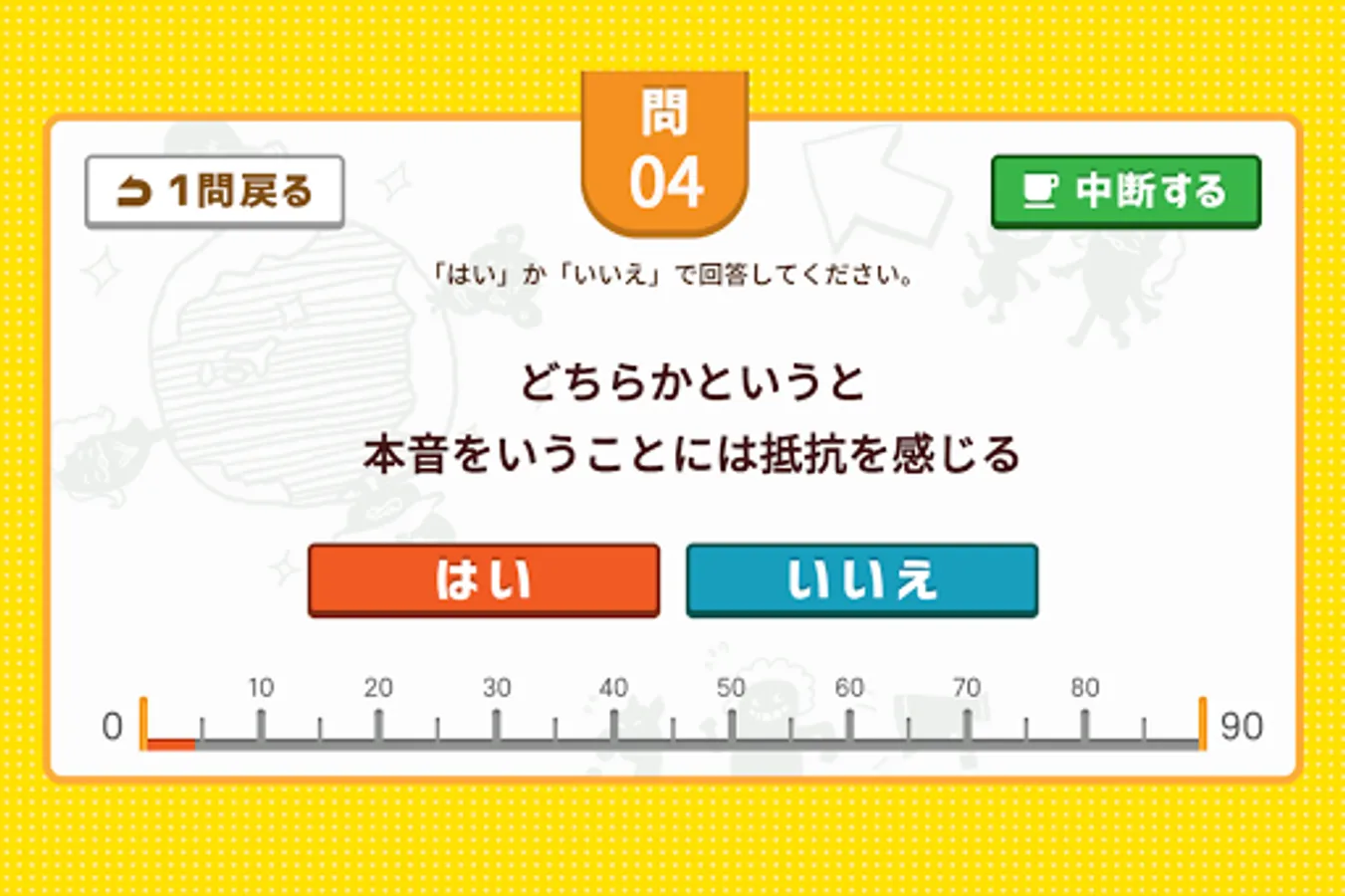 当アプリは、YES/NOで質問に答えていくことで、9つの気質の中から「自分の気質タイプ」を見つけ出すアプリです。