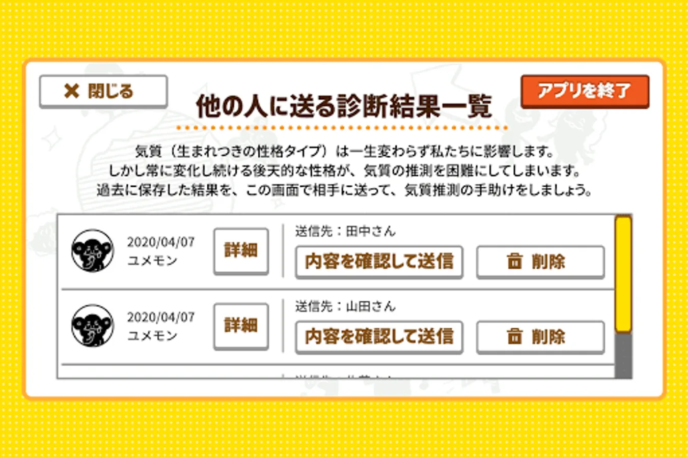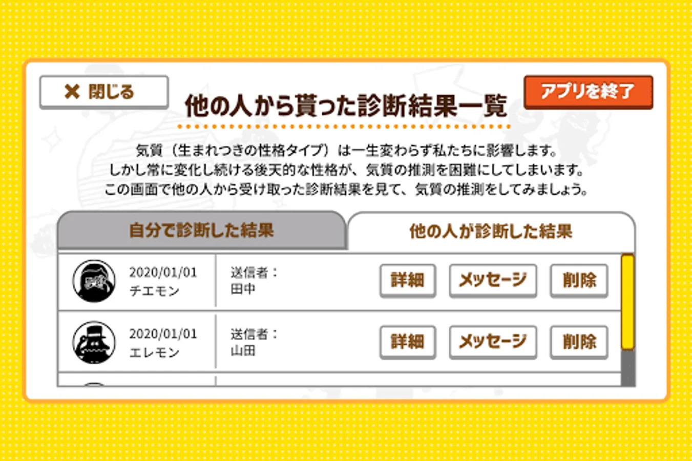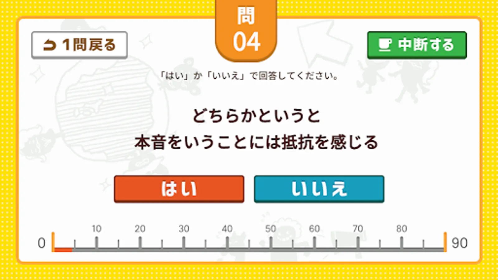 当アプリは、YES/NOで質問に答えていくことで、9つの気質の中から「自分の気質タイプ」を見つけ出すアプリです。