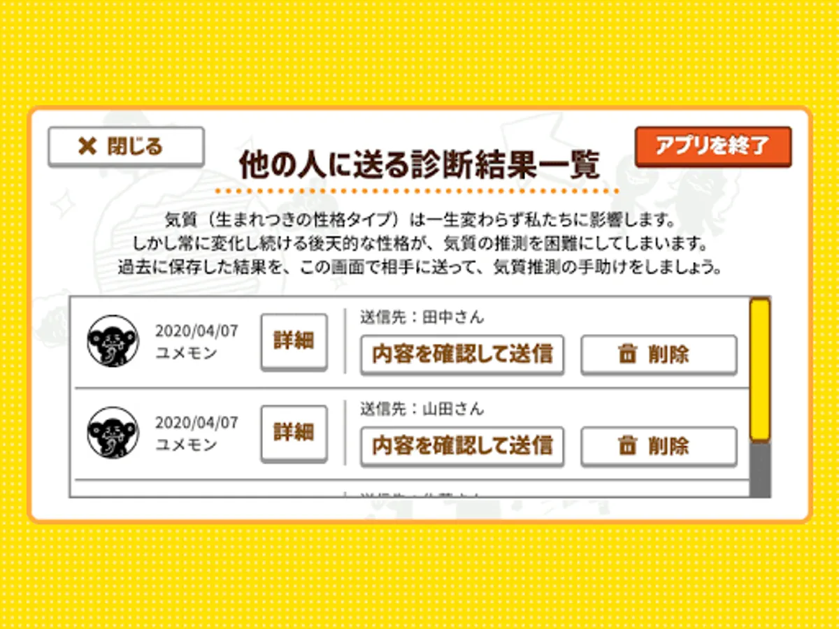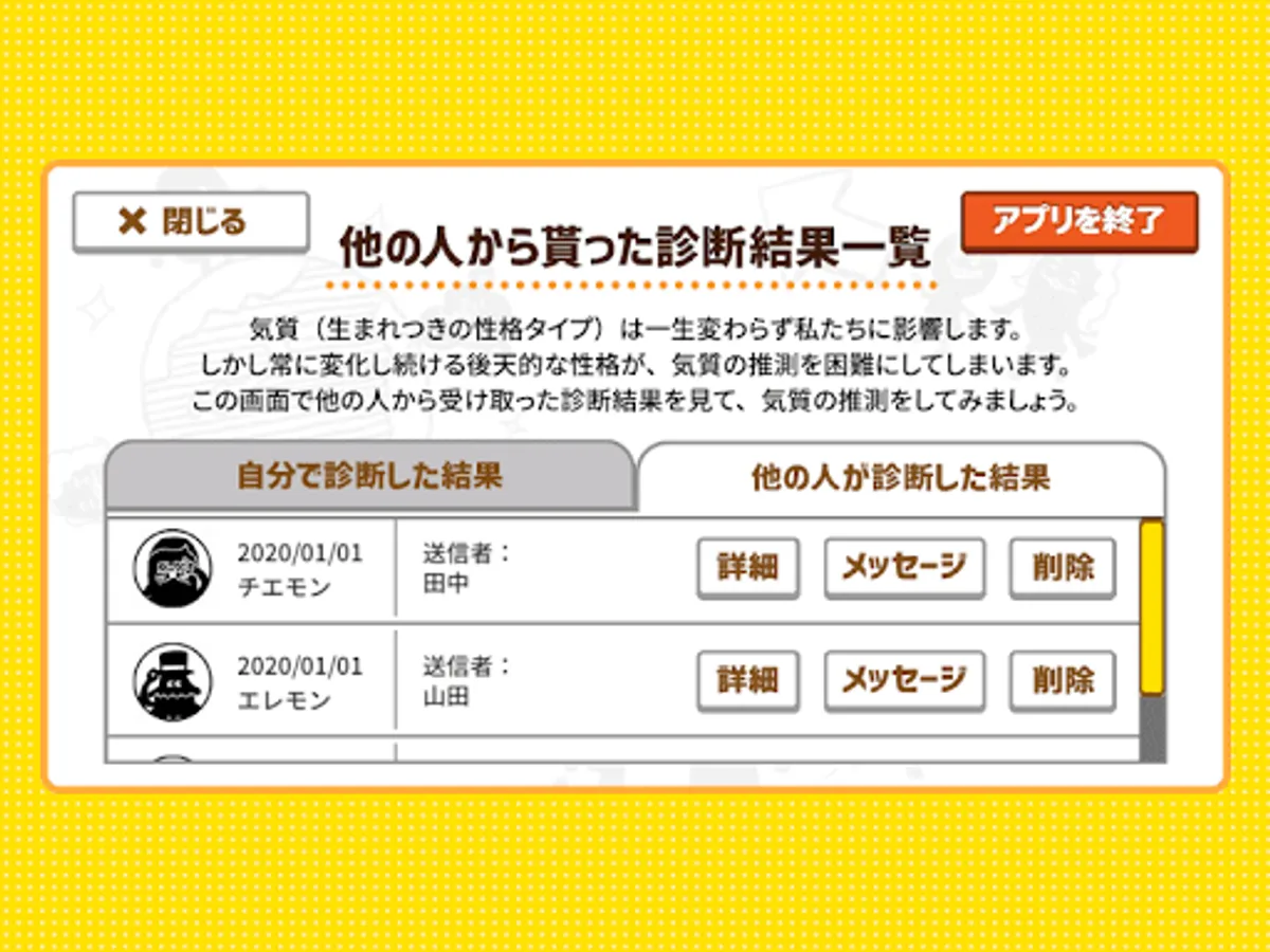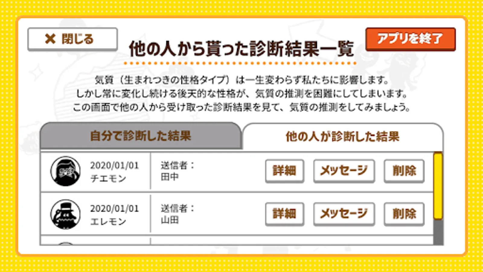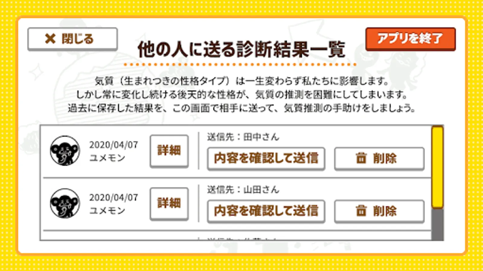 当アプリは、YES/NOで質問に答えていくことで、9つの気質の中から「自分の気質タイプ」を見つけ出すアプリです。