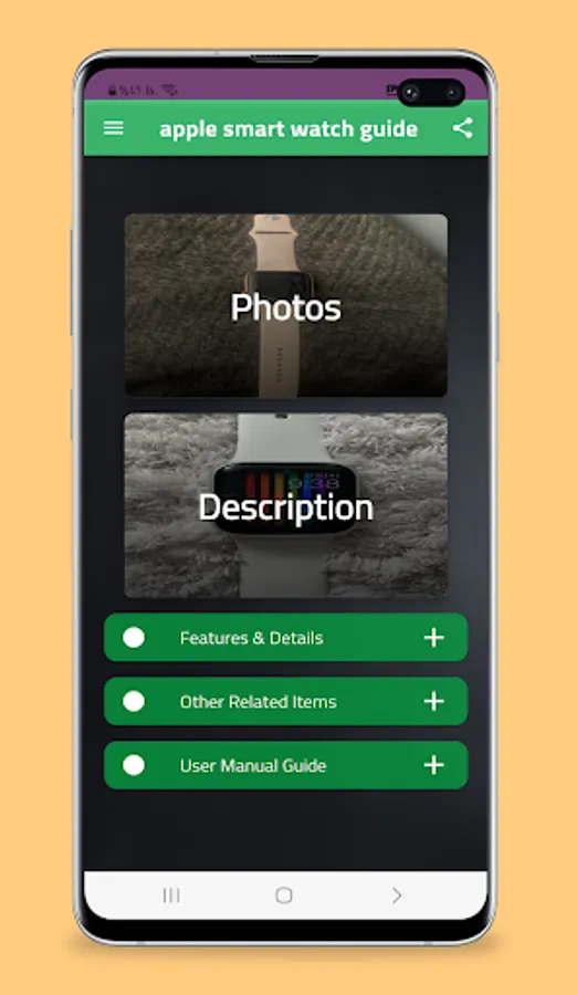 In apple smart watch guide app we supported many sections of content that will let you now more information about apple smart watch guide