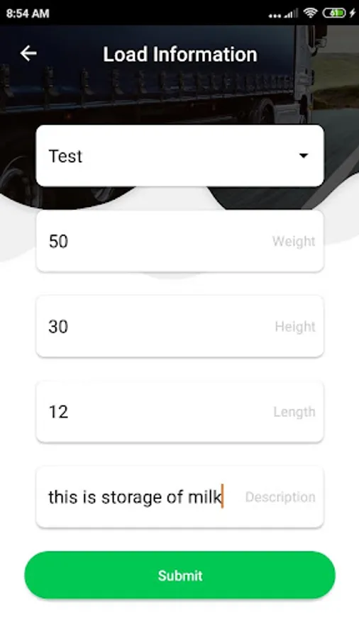 · Upload quickly all the load details through the app, like which material, size, and pictures of it.