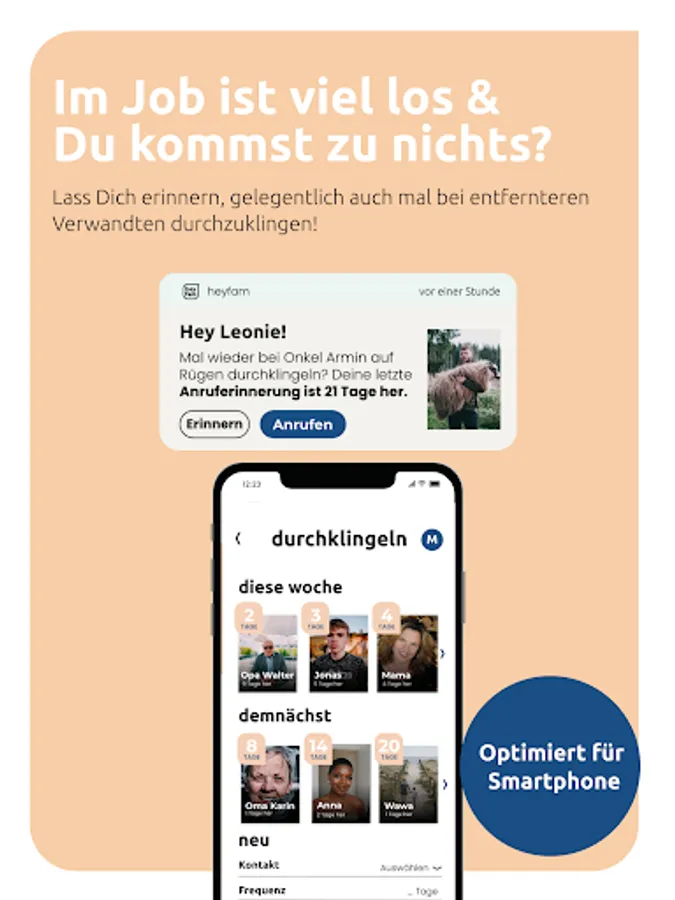 And heyfam offers you so much more - for example call reminders in your frequencies or notes on each contact if wishes are expressed throughout the year that you would like to have at hand for your birthday.