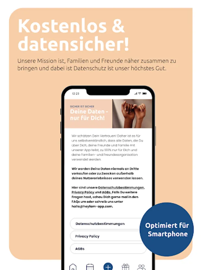 Our app is completely free and data-safe - we only use your data for you and your user experience. We stand transparently behind our data protection promise, which can be called up at any time in the app. We are a startup, which means that most likely not everything will be perfect yet. So it would be of great help to us if you would be lenient, don't give up right away and give us feedback if something feels wrong or if you are unsatisfied with anything. At the same time, we are already working on our next update, which will expand functions and products, and we are launching our web platform.