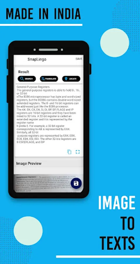 SnapLingo OCR can recognize text (Only Latin Characters) from any image at a lightning speed while maintaining a very high accuracy.